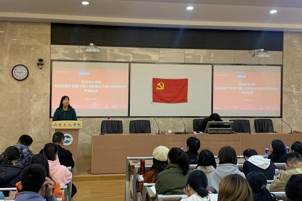 (通讯员 黄楚依)11月25日下午,英国365集团预备党员宣誓暨第71期入党积极分子培训班集中授课开班仪式在历文院203教室举行。学院党委书记孔春辉,党委副书记贺慧星,组织人事秘书凌爱群,学工办主任陈敏,2020级辅导员周冲出席开班式。