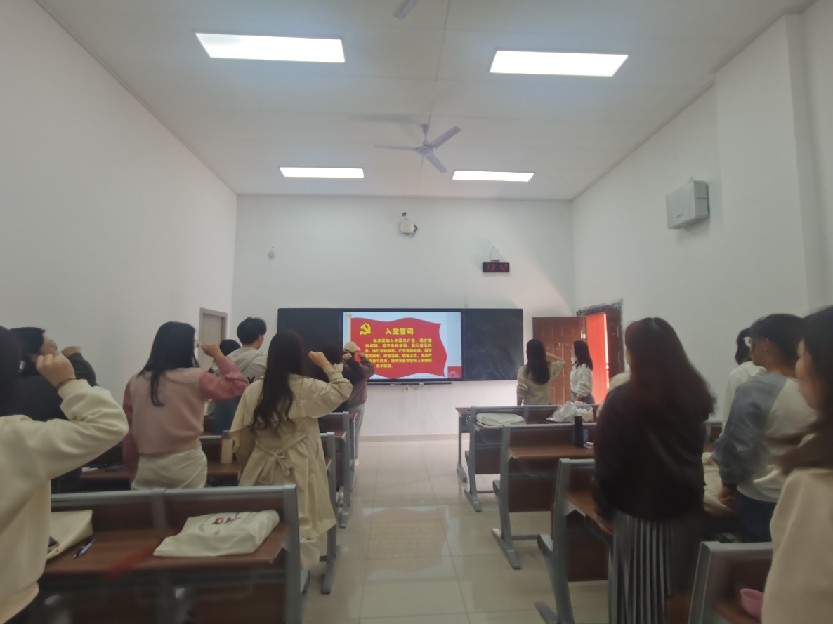 会上,发展对象黄静芝同志从思想上、学习上、工作上等方面进行了个人陈述,表明了自己入党的心路历程、研究生生活和学习经历。接着培养人刘松同志对其进行了充分肯定,并表示愿意介绍黄静芝同志加入中国共产党。随后参会党员进行无记名投票,投票结果同意接收黄静芝同志为预备党员。经过以上会议流程,支部将迎来一名新的预备党员。而后在刘宇婷同志的带领下,参会人员集体起立宣誓,重温了入党誓词。