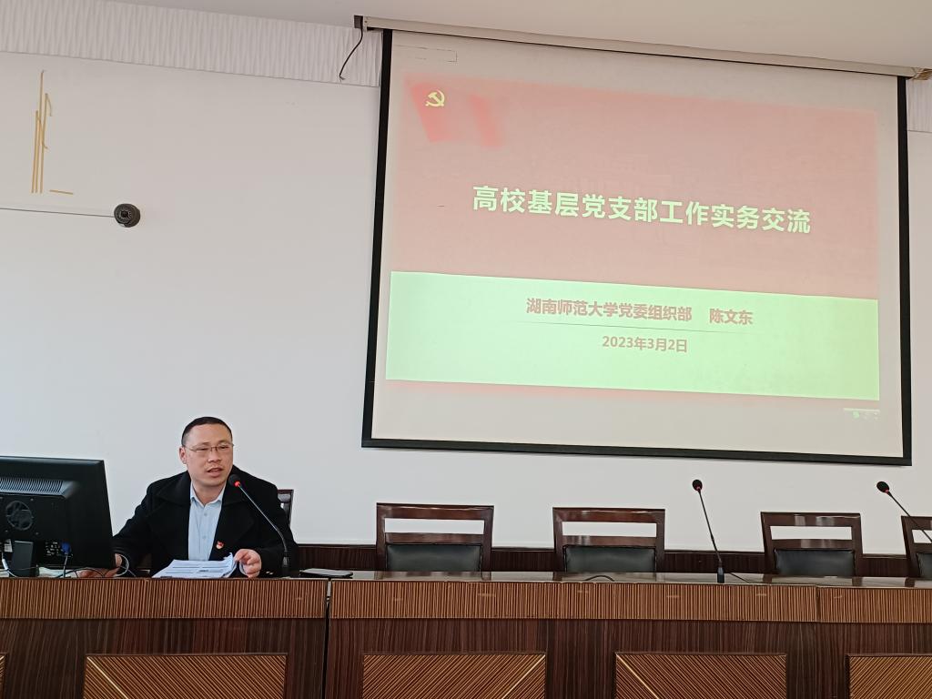 陈文东以“高校基层党支部工作实务交流”为主题,详细讲解了发展党员五个阶段25个环节,着重介绍了党员档案中材料的注意事项。
