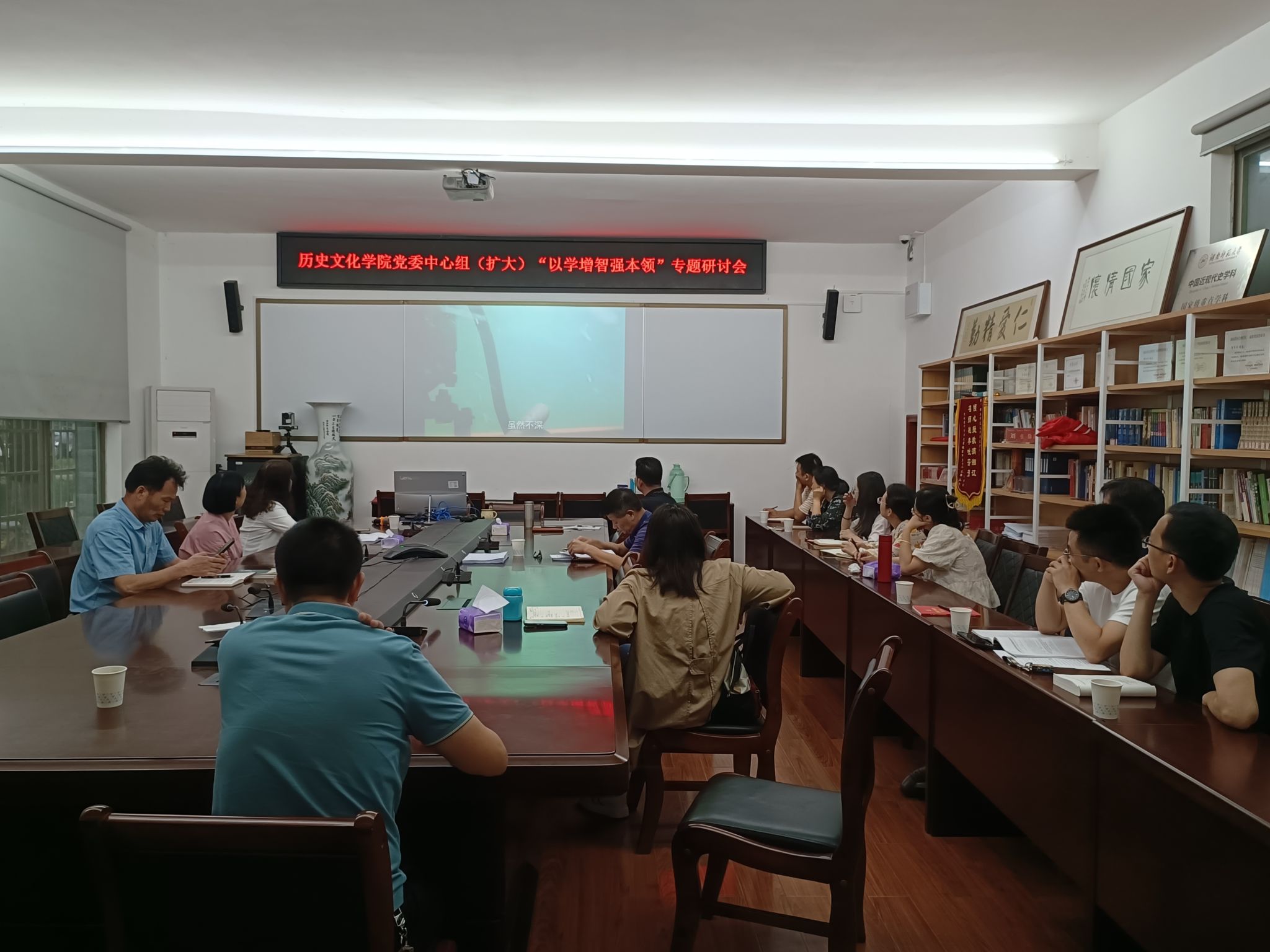 2023年6月5日上午,英国365集团党委在文渊楼111会议室召开学习贯彻习近平新时代中国特色社会主义思想主题教育“以学增智强本领”专题学习研讨会。院党委书记孔春辉主持会议。