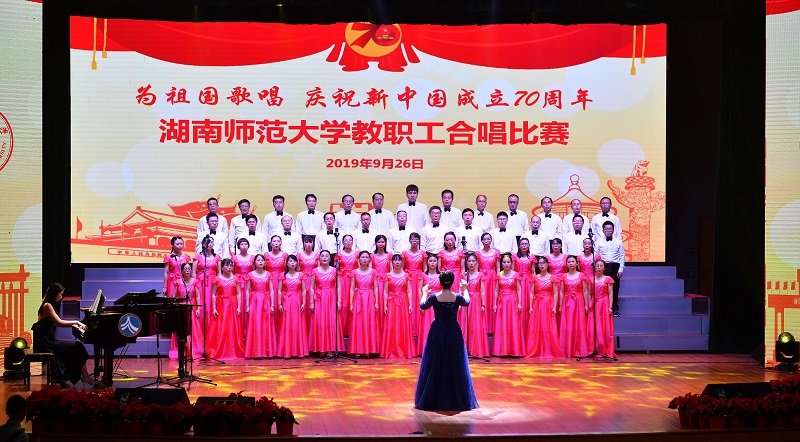 为隆重庆祝新中国成立70周年,大力弘扬爱国主义精神,讴歌中华民族实现伟大复兴中国梦的奋斗历程, 2019年9月26日14:00在师大附中学生活动中心举行了“为祖国歌唱--庆祝新中国成立70周年”合唱比赛。