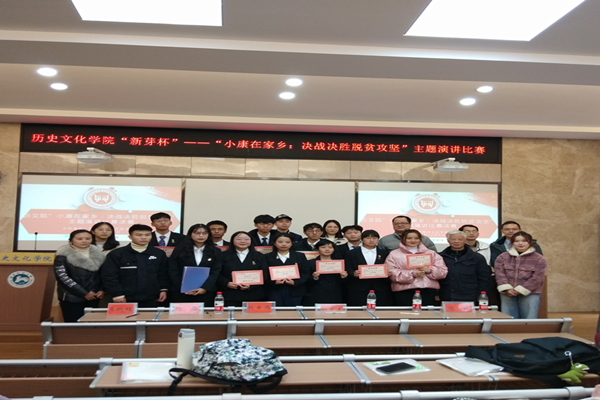 此次决赛的十位选手,由班级初赛、学院复赛选拔而出。比赛过程中,同学们或聚焦家乡变化,或讲述基层扶贫干部的故事,大家各抒己见,都表达了自身对“全面建设小康社会、决战决胜脱贫攻坚”这一主题的理解。选手展示结束后,赵士国老师和彭赛丰书记也对同学们的演讲表现发表了精辟而简短的点评,随后,赵士国老师及其它老师为获奖的同学颁发了奖状和奖品。