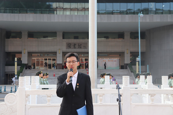 清晨7点,学校女子国旗护卫队迈着铿锵有力的步伐护送国旗来到升旗台。伴随着嘹亮的国歌声,五星红旗冉冉升起。之后,来自2020级历史基地班的刘官厅在鲜红的国旗下进行演讲,倾诉爱党心声。