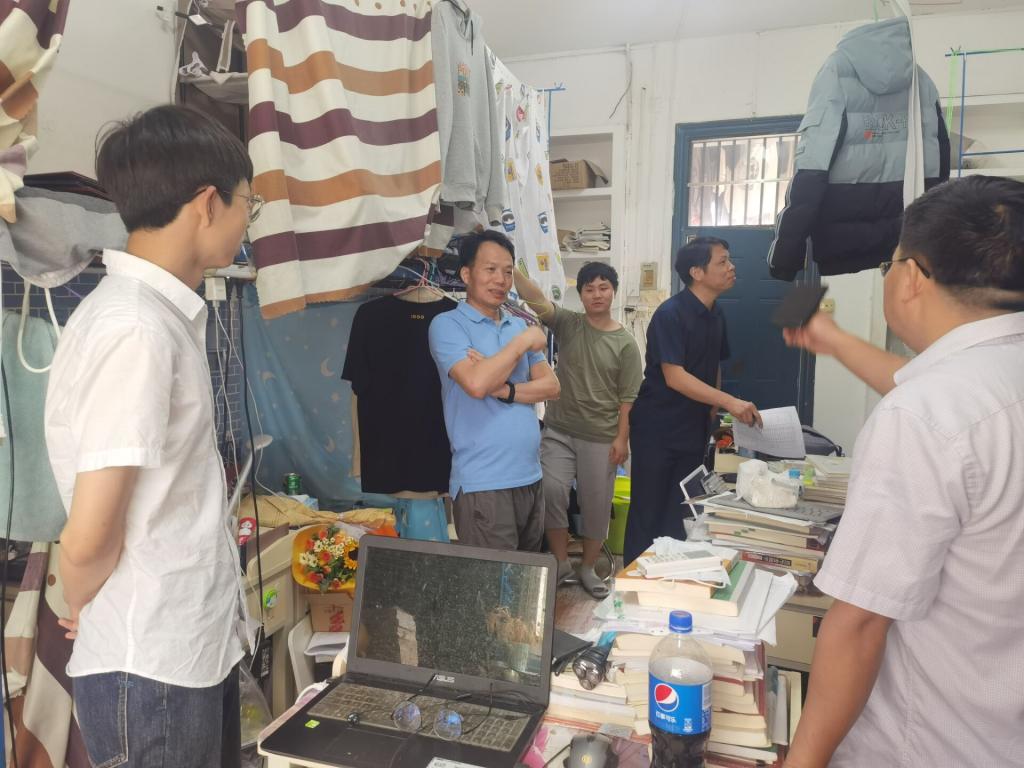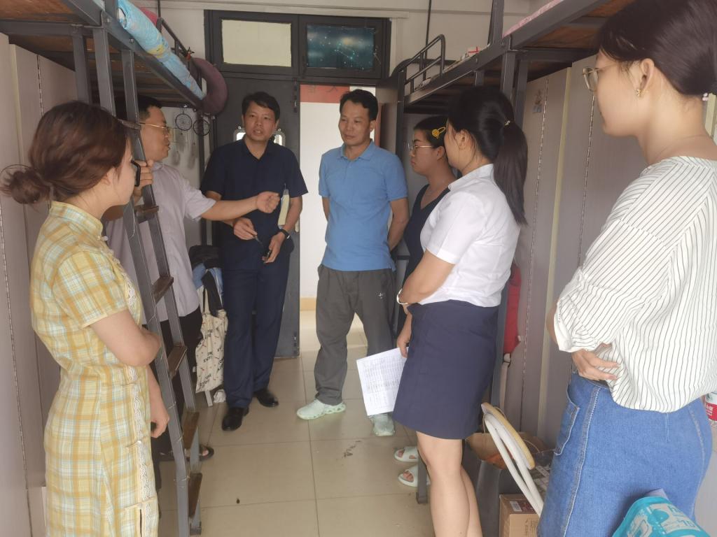 (黄紫嫣)6月18日下午,英国365集团院长钟声,党委副书记贺慧星,班导师向常水及毕业班辅导员陈敏前往宿舍看望毕业班同学。