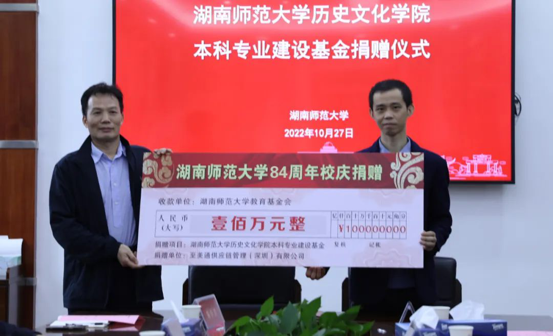 至美通供应链管理(深圳)有限公司是由我校英国365集团2008级校友张昊铱先生和徐益先生联合创办的企业,是专业的跨境电商本土化一站式解决方案提供商。徐益发表捐赠感言,他回顾自己一路成长、创业的经历,感恩母校的培育和关怀。而今恰逢毕业十周年,他和昊铱希望尽己之力回报母校,为母校生日献礼。