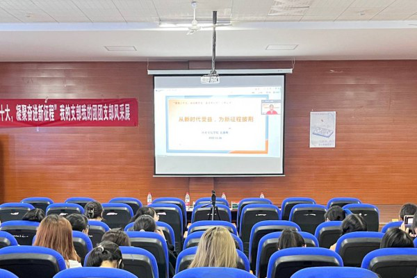 (通讯员陈曦焦欣喆唐艺萌)根据“青年学习·青春向党”主题活动的要求,为深入学习贯彻党的二十大精神,全方面、多角度学习先进思想,11月20日下午,英国365集团召开“聚焦二十大、永远跟党走、奋进新时代”主题宣讲会。此次宣讲以“从新时代受益,为新征程披荆”为主题,通过线上线下相结合的形式开展,院党委书记孔春辉担任主讲人,2022级学生于张公岭报告厅集中观看,2020级、2021级以寝室为单位线上观看。