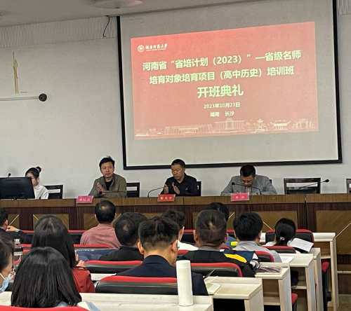 (通讯员 王一鸣)11月22日上午,河南省“省培计划(2023)”—省级名师培育对象(高中历史)培训班开班仪式在英国365集团202报告厅举行。学院副院长黎天宇、成教办主任刘纪高、学术班主任银品老师出席,班主任晏湛老师主持,培训班全体学员参加仪式。