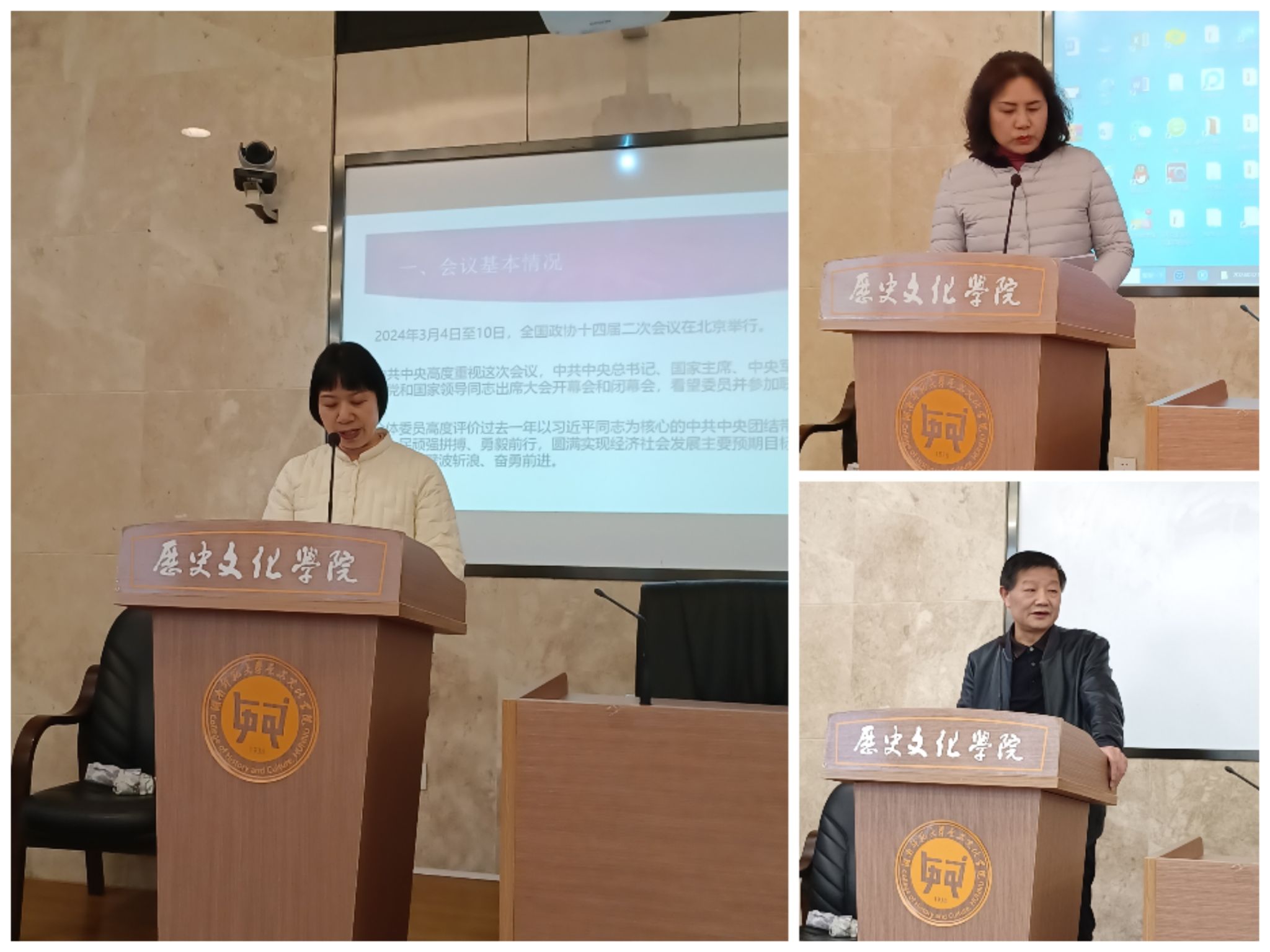 副院长徐良利领学十四届全国人大二次会议精神。他概述了政府工作报告主要内容、2024年经济社会发展的总体要求、政策取向和工作任务,结合“加强高质量教育体系建设”重点阐述了学院本科教育教学工作的努力方向。