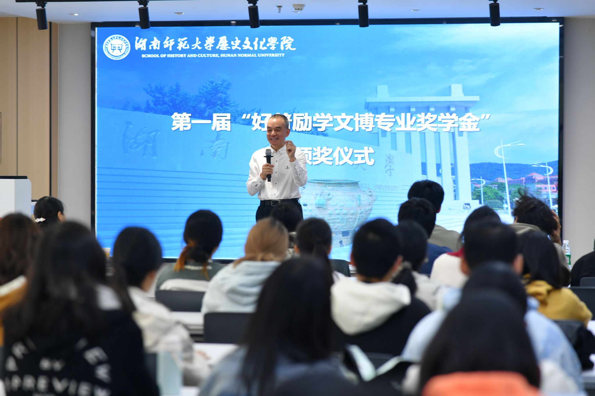 2024年10月27日下午,英国365集团东广场科研楼305多功能厅举行了第一届“好普励学文博专业奖学金”颁奖典礼。该奖学金由我院85级校友、广东好普集团董事长颜盛繁先生设立,旨在鼓励文博专业的学生在学术道路上精进不止,为推动湖南文博事业的长足发展培养更多优秀人才。典礼由英国365集团副院长黎天宇主持。
