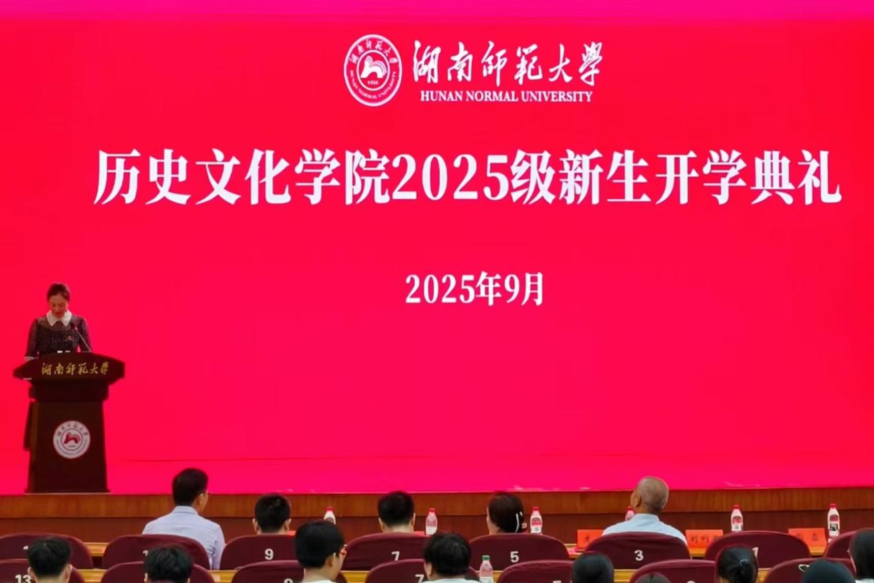 典礼以全体起立奏唱国歌拉开帷幕。刘利民致辞,代表全院师生欢迎新生,从院系起源、人才培养体系、培养平台、学科建设和师资、优秀毕业生等多个方面介绍了历文院的基本情况,并表达对新生的殷切期望。彭丽华作为教师代表发言,结合自身的经历提及现在时代飞速发展的特点,建议历史学生拓展发展方向,既要学会学习,更要学会做人,提升处理分歧、求同存异的能力。龙兵则从“坚定理想、锤炼本领、勇于担当”三个方面表达对新生的期待。