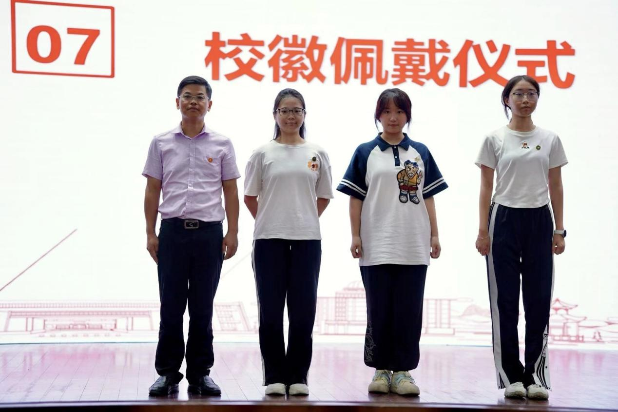 讲话环节后,刘利民为各系代表学生佩戴校徽并合影留念。典礼最终在校歌合唱中结束。