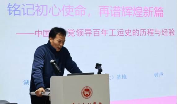 在与会人员报告环节,首席专家钟声教授率先以《中国共产党领导百年工人运动史的历程与经验》为题,梳理百年工运发展的核心脉络与实践经验。